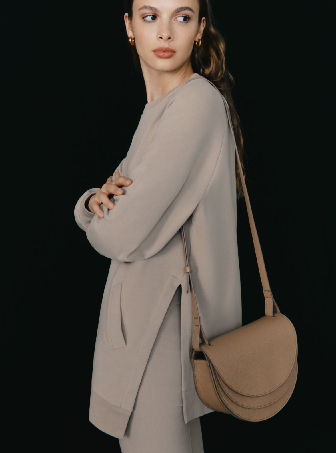 This long fleece crewneck sweatshirt offers an elevated take on a cold-weather essential. Crafted from soft, cosy cotton fleece, it delivers relaxed comfort with a modern, elongated silhouette. Perfect for layering or wearing solo, this sweatshirt blends effortless style with everyday warmth for USA wardrobes.